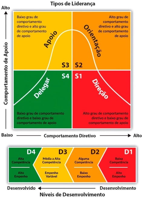 Aqui, temos o mapa do conceito de liderança de Hersey e Blanchard.